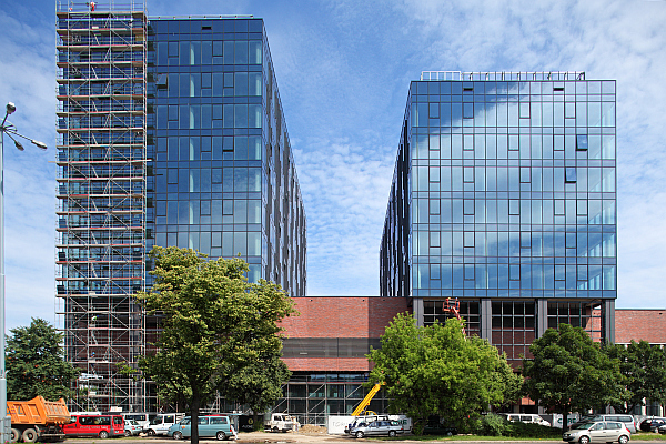 Na gdańskiej Alchemii rozpoczął się montaż ostatnich elementów, które zmienią wygląd zewnętrzny pierwszego etapu inwestycji. Są to charakterystyczne, pionowe siatki, które niczym „krawaty” przyozdobią elewację budynku. Ich kolory - złoty i platynowy, odpowiadają nazwom poszczególnych wież biurowych - Aurum i Platinum.