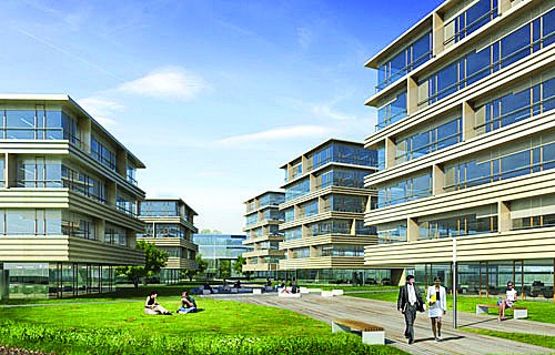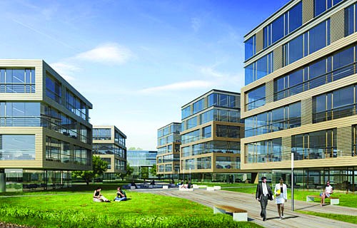 Jeśli wyobrazi sobie Pani kilka budynków biurowych o powierzchni około 3-4 tys. mkw. każdy położony pomiędzy zielenią, połączone alejkami, z dużym podziemnym parkingiem, to jest to idealne miejsce do pracy.