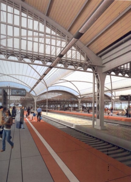 Przebudowa nie ominie również peronów dworcowych. Tutaj również wymagane będzie wzmocnienie i wymiana elementów konstrukcyjnych wiat peronowych. Poza tym niektóre perony zmienią swoją dotychczasową długość, pojawi się elektroniczny system informacji pasażerskiej. Nowością i znacznym ułatwieniem dla pasażerów w tej część obiektu będzie powstanie przy schodach prowadzących na peron taśmy bagażowej (korytarz główny od hallu). Od strony przejścia wschodniego zainstalowane zostaną schody ruchome na perony.
