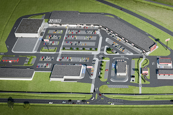 Na terenie 5-hektarowej działki zaplanowano również budowę restauracji typu drive, dużej stacji paliw oraz parkingu na około 500 miejsc. Inwestor posiada prawomocną decyzję udzielającą pozwolenia na budowę.