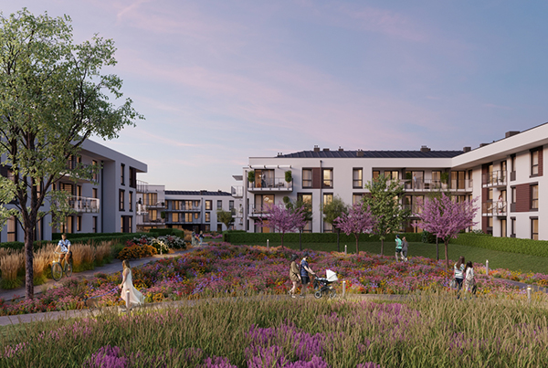 Docelowo na terenie inwestycji zaplanowano 24 budynki o niskiej zabudowie, w których powstanie łącznie ok. 600 lokali.