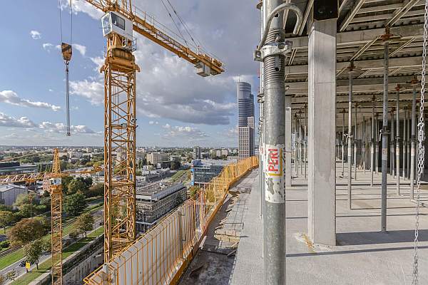 Właśnie zakończone zostały prace związane z konstrukcją jednego z dwóch 15-piętrowych budynków wchodzących w skład kompleksu Warsaw Spire. Aktualnie na budynku B, który już w przyszłym roku stanie się nową siedzibą europejskiej agencji Frontex, trwa montaż szklanej fasady.