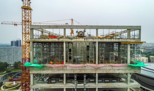 W połowie września zaplanowano demontaż żurawia K-2, mierzącego obecnie 78 metrów. W tym czasie ma również rozpocząć się budowa układu drogowego.