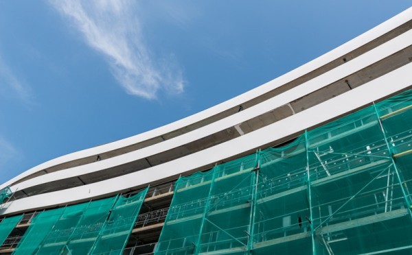 Na elewacji OVO Wrocław trwa montaż Corianu