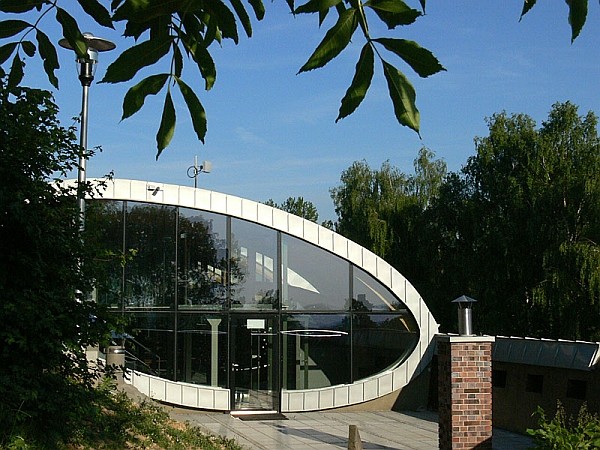 Podjęta próba sprowadza się do szukania uproszczenia formy regionalnej, doprowadzenia jej do pewnego „schematu", w którym ostre krawędzie brył określają geometrię budowli i jej proporcje. Detal architektoniczny został ograniczony do użycia jako podstawowe wykończenie ścian i dachu jednego materiału w postaci listew profilowanych z świerka syberyjskiego. Szkło jest drugim materiałem elewacyjnym. Ograniczenie skarpy zaprojektowano w surowym betonie.