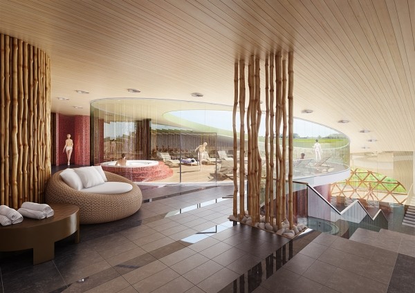 Budynek hotelu będzie miał cztery kondygnacje nadziemne i jedną podziemną. Parter w kształcie litery L stanie się przedłużeniem części Aquaparku. Na parterze znajdzie się baza hotelowa z restauracją, a także miejsce na lokale usługowe np.: salon fryzjerski, sklep sportowy, kiosk itp. oraz zespół sal konferencyjnych. Na pozostałych trzech kondygnacjach znajdą się pokoje hotelowe: 48 dwuosobowych, dziewięć apartamentów dwuosobowych, oraz małe foyer na każdej z nich. Kondygnacja podziemna przeznaczona jest na zaplecze techniczne i obsługę hotelu.