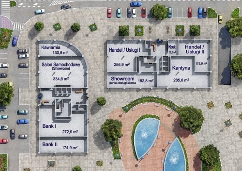Projekt będzie realizowany w dwóch etapach: w pierwszym powstaną cztery budynki, w drugim kolejne trzy. Pierwsze obiekty zostaną zlokalizowane w tej części działki, która znajduje się bliżej Hali Olivia. Mają otoczyć duże atrium dostępne tylko dla pieszych - z fontanną, starannie zaprojektowaną zielenią i małą architekturą: ławeczkami i innymi meblami miejskimi. Na parterach budynków znajdą się powierzchnie usługowe, takie jak sklepy, restauracje i banki. Latem na elewacji zawisną markizy, a pod parasolami będzie można zjeść lunch lub kolację. Ponadto inwestor przewidział też powierzchnie usługowe, dostosowane konkretnie do potrzeb pracowników biur - kiosk, kantynę, a nawet pralnię. Między budynkami ma powstać typowy śródmiejski plac - żywa tkanka miejska zaspokajająca bardzo różne potrzeby użytkowników i gości kompleksu.