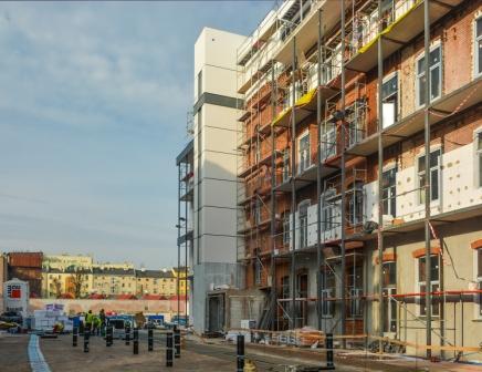 Przeprowadzenie tak wieloetapowej inwestycji wiąże się z doskonałą organizacją prac renowacyjnych oraz dobraniem materiałów, które spełnią wymagania inwestora w zakresie jakości oraz efektów robót budowlanych. Za przystosowanie dwóch budynków starej fabryki i budowę trzeciego odpowiada firma RED Real Estate Development, która wybrała materiały firmy Baumit. We wnętrzach zastosowano maszynowe tynki gipsowe. Z kolei elewacja została wykończona systemem ociepleń Baumit Pro z tynkami silikatowymi. Produkty te gwarantują, że rewitalizacja Przedmieścia Oławskiego pozwoli w pełni odtworzyć architekturę oryginalnych kamienic i stworzyć nietuzinkowe lofty.