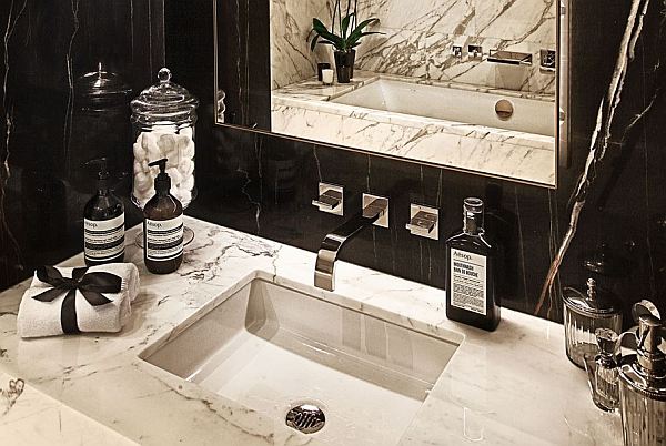 Zespół projektowy pod przewodnictwem Jonathana Clarke’a stworzył projekt kuchni, w której dominującym elementem są drewniane meble wykończone białym błyszczącym lakierem i fornirem z amerykańskiego orzecha. Zastosowano również solidny czarny granitowy blat. Na wyposażeniu znajduje się nierdzewny stalowy zlew Blanco oraz sprzęt marki Gaggenau, w tym wbudowana zmywarka, lodówka z zamrażarką, dolna lodówka na wina (tylko w niektórych apartamentach), indukcyjna płyta kuchenna oraz piekarnik połączony z mikrofalówką. Do tego zintegrowany lub wyspowy okap firmy Ciarko.